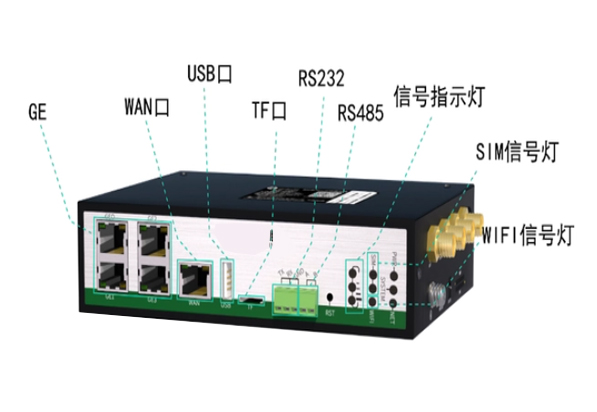 SR800拥有工业级5G模块,时间同步采用NTP技术,并内置有RTC。它有1个WAN口和4个10M/100M/1000M自适应MDI/MDIX口的LAN口,2个抽屉式卡座的SIM卡接口,1个USB2.0接口,1个复位按钮,4个4G/5G天线和2个2.4G/5.8G天线(可选4个),1个电源端子,1个console口,9个指示灯。SR800采用外置电源适配器(12V 2A),工作电压为宽电源输入DC 936V,待机功耗为300500mA@12V DC,工作功耗为500700mA@12V DC。